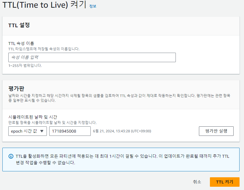 5. TTL 속성 이름은 코드에서 사용하는 키 값을 의미 그걸 확인해서 시간 체크 없애기 때문