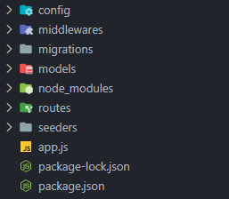 -> config, middleware, models는 sql 코드를 이용해서 표를 만들면 자동생성