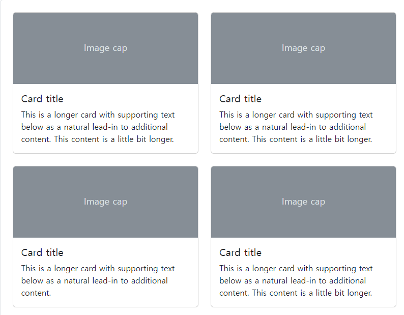 위치는 부트스트랩 사이트 -> 왼쪽 목록 Comment -> Card -> Grid cards의 두번째 코드를 사용했습니다.